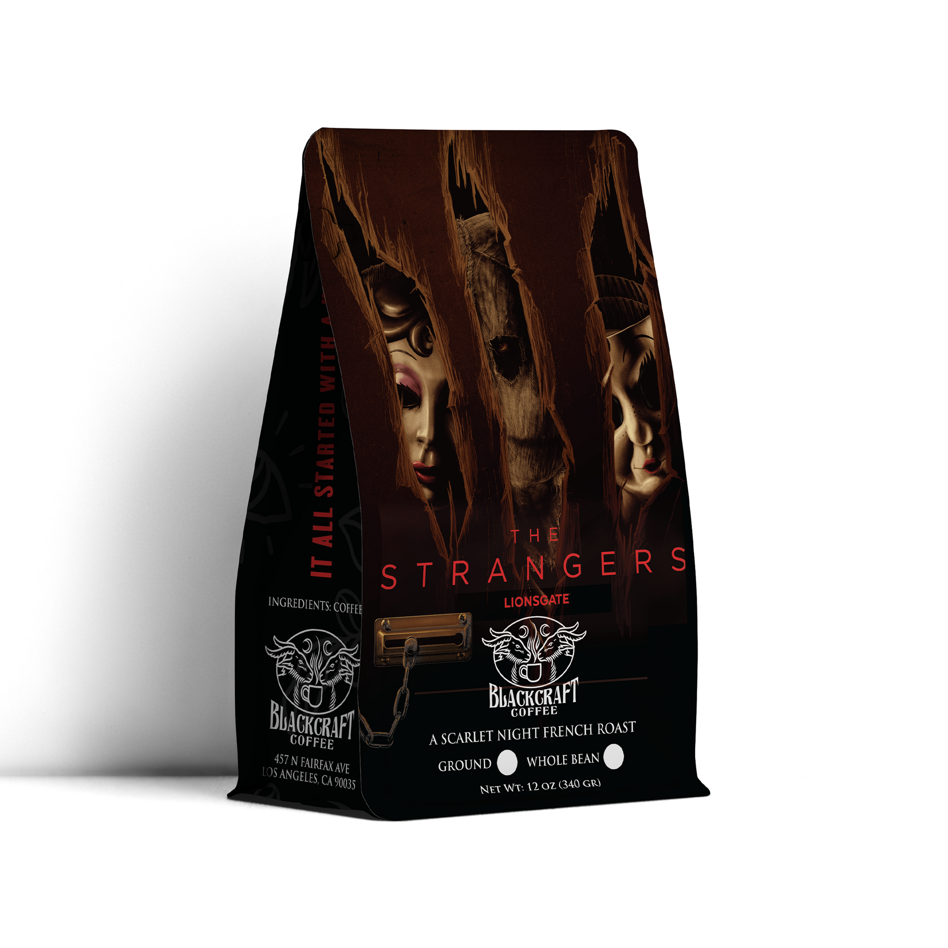Blackcraft Coffee & Lionsgate have teamed up to bring you The Officially Licensed Strangers Chapter 2, A Scarlet Night French Roast. A perfect blend of coffee beans from Colombia, Brazil, Sumatra, and Kenya.